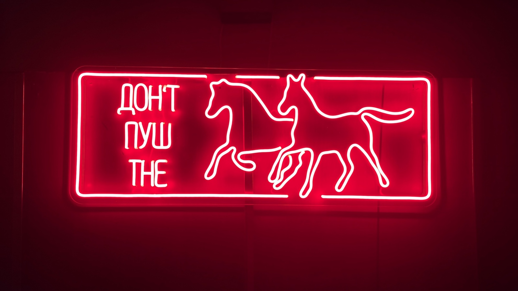 Неоновая вывеска «Don’t push the horses» - стильный акцент с характером.