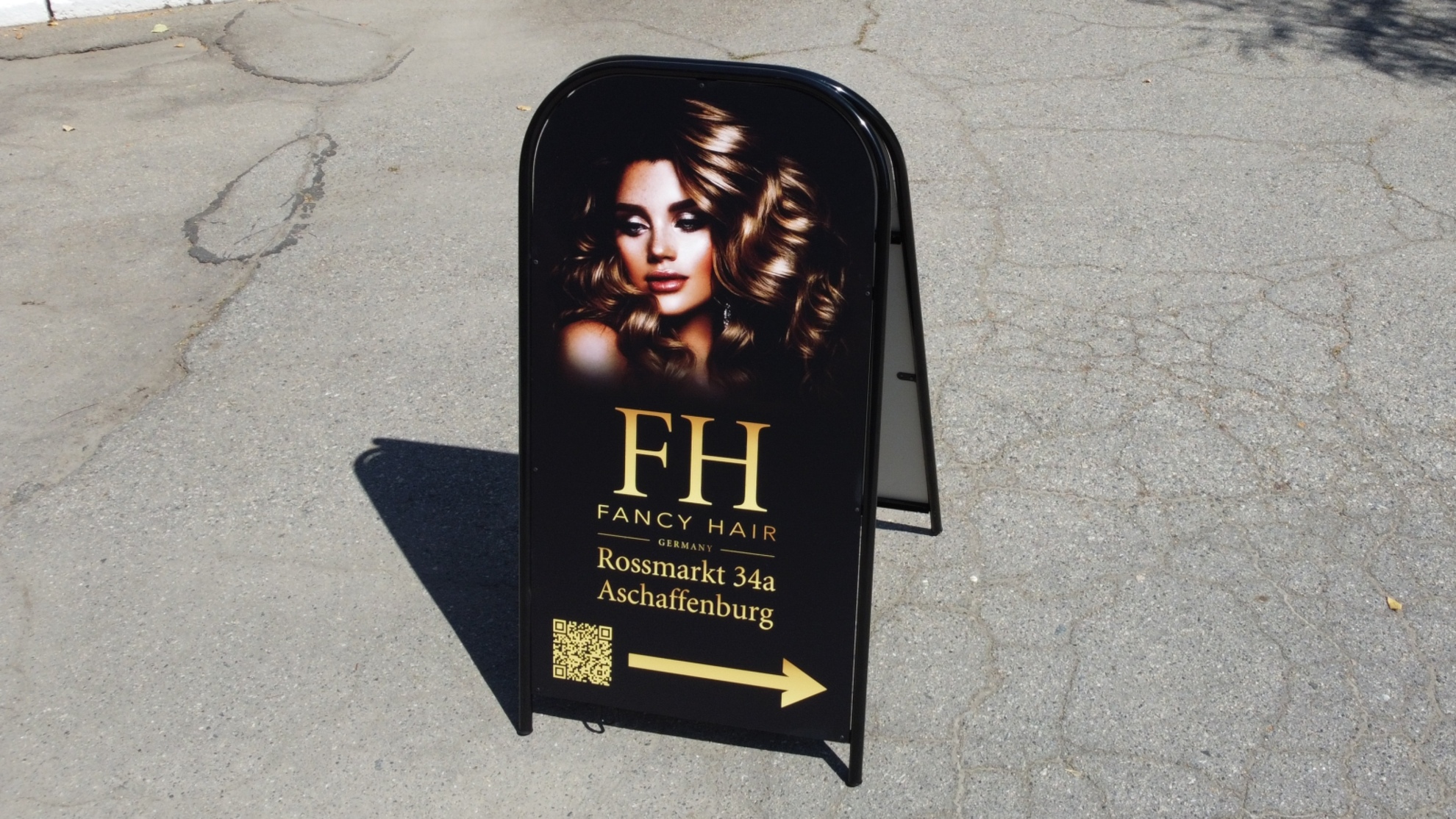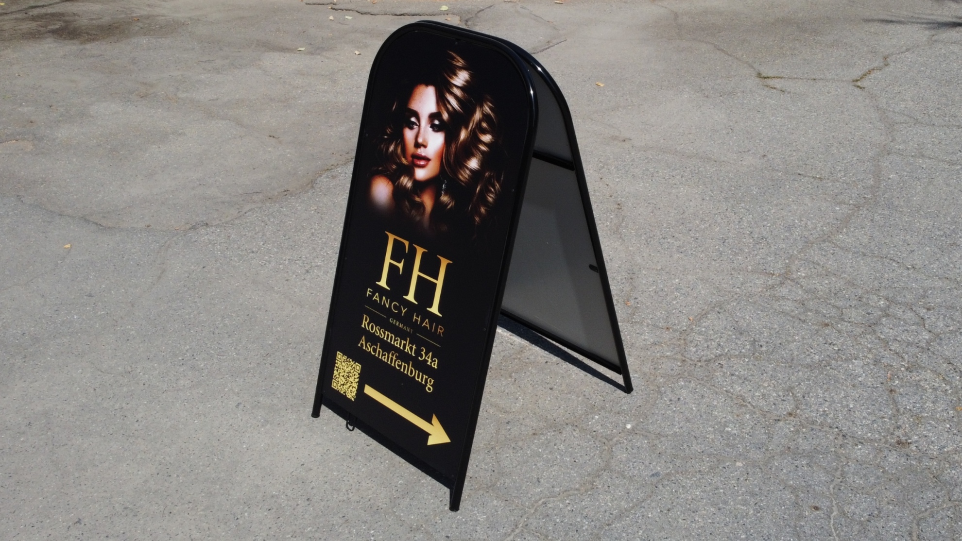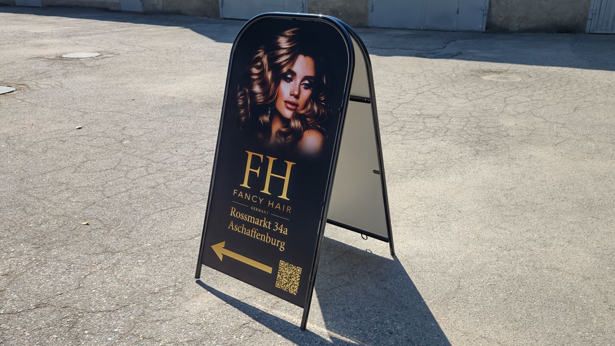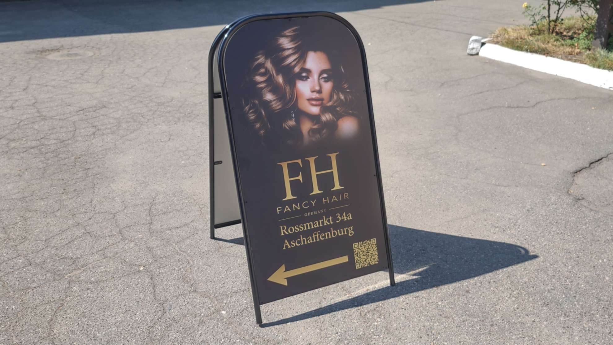 Показательный пример: конкретно данная модель штендера была изготовлена нашей компанией и отправлена в Германию для местного салона красоты, где уже активно используется в рекламных целях.