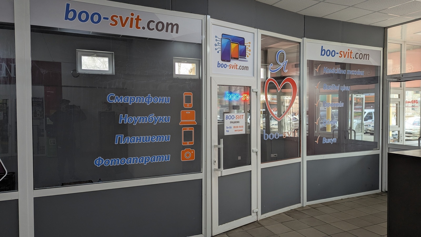 Додатково було виконано брендування вітрин магазину за допомогою друку на плівці, та плотерній різці друкованого зображення. Це підсилює візуальну присутність бренду та робить торгову точку більш впізнаваною для клієнтів не закриваючи всю площину вітрини. Тож маємо обзор на вітрини з товаром всередині магазину.